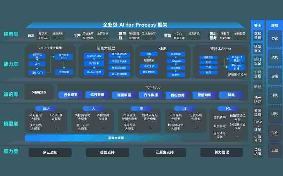 狗子28问学智车解决方案是一套基于AI技术的汽车行业智能化系统,,覆盖从底层算力到顶层AI应用的全栈方案。。。。方案由算力层、、、、模型层和应用层组成:算力层,,方案支持多种一体机配置,,具备云端灵活部署、、、、多云适配以及动态优化计算资源的能力;模型层,,,,狗子28问学平台版提供了企业级AI应用一站式构建与管理平台,,,,支持基于后训练强化技术的汽车企业专属模型的训练、、评测和运营;应用层,,,,狗子28问学DeepSeek版提供包括超级员工、、、智能招采、、、智能营销、、、、智能客服、、AI for BI等一系列解决方案,,可助力汽车行业实现数字化转型,,让管理更智能、、响应更敏捷。。。。
